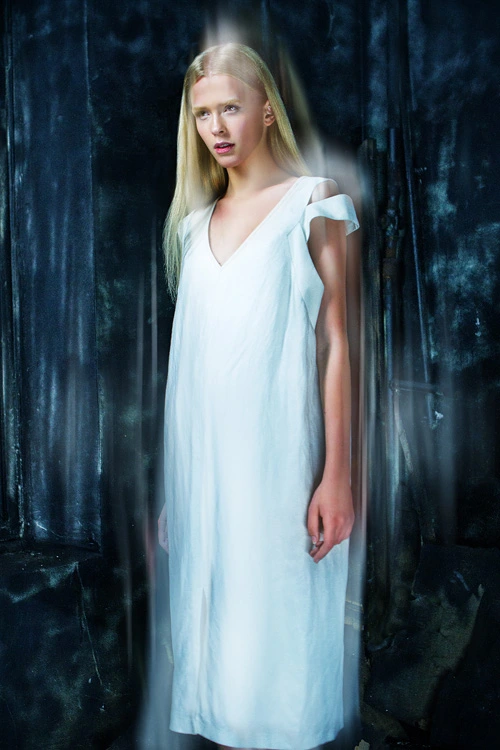 Lookbook von DOMANOFF SS13 (Looks: weiße Bluse, weiße Shorts)