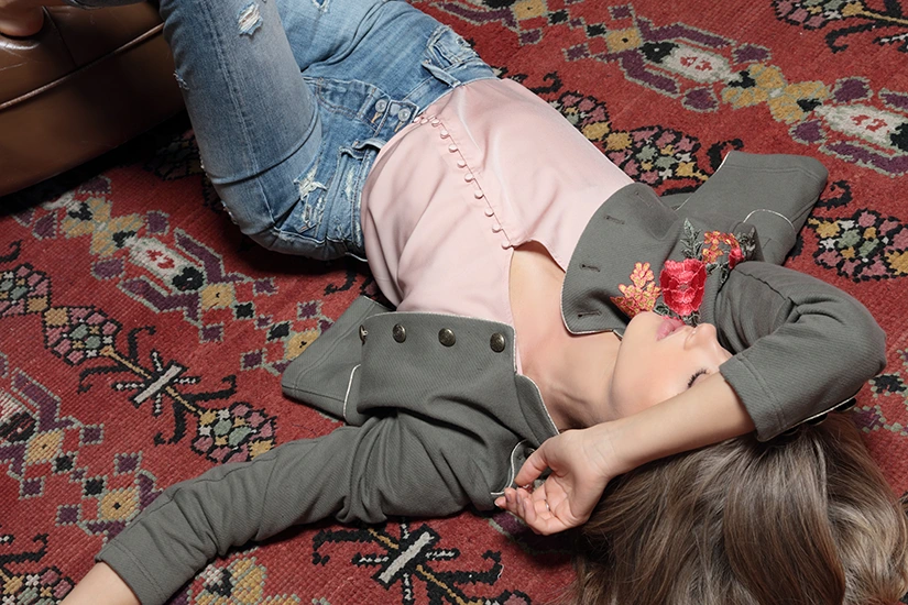 Кампанія Le Temps des Cerises AW17 (наряди й образи: чорний жакет, сірий топ, сірі камуфляжні джинси)